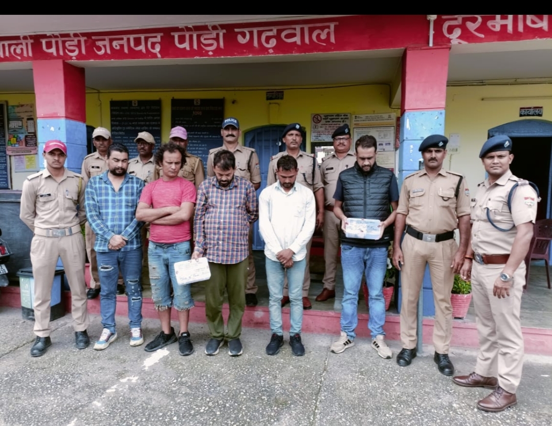 पौड़ी जिले के वरिष्ठ पुलिस अधीक्षक यशवन्त सिंह चौहान द्वारा जनपद के समस्त थाना प्रभारियों को थाना क्षेत्रान्तर्गत अपराधों की रोकथाम व वन सम्पदा, खनिज पदार्थो आदि की अवैध तस्करी करने वालों के विरुद्ध कड़ी कार्यवाही किये जाने के सम्बन्ध में आदेशित किया गया है। जिसके क्रम में अपर पुलिस अधीक्षक मनीषा जोशी के निर्देशन, पुलिस उपाधीक्षक सदर पौड़ी प्रेमलाल टम्टा के प्रर्यवेक्षण, प्रभारी निरीक्षक पौड़ी व उपनिरीक्षक दीपक पंवार, उपनिरीक्षक हेमकान्त सेमवाल के नेतृत्व में पुलिस टीम द्वारा 22.जुलाई 2022 प्रातः 02:45 बजे पौड़ी थाना क्षेत्रान्तर्गत* शान्ति व्यवस्था/चैकिंग ड्यूटी के दौरान पाबौ की तरफ से बुआखाल पौड़ी की ओर आ रहे अवैध लीसासे भरे ट्रकों *वाहन संख्या- UK-04CA-3905, UK02CA-0165, UK04CA-1915 को चैक किया गया, तो सभी तीनों ट्रकों में अवैध लीसे के कुल 2003 कन्स्तर से भरे हूये थे। जिसे वाहन चालक पाड़वाखाल क्षेत्र से ऋषिकेष ले जा रहे थे। पूछताछ करने पर वाहन चालक व परिचालक द्वारा वाहन में लीसा भरा होने के सम्बन्ध में कोई भी कागजात प्रस्तुत नहीं किये गये। जिस सम्बन्ध में पांचो अभियुक्तों के विरुद्ध कोतवाली पौड़ी में मु0अ0सं0- 20/2022, धारा- 26/41/42 भारतीय वन अधिनियम 1927 के तहत अभियोग पंजीकृत किया गया, उक्त वाहनों UK-04CA-3905 में कुल-702 कनस्तर, UK02CA-0165 में कुल-641 कनस्तर, UK04CA-1915 में कुल-660 कनस्तर अवैध लीसा से भरे हुये मिले। दो ट्रकों के चालक अँधरे का लाभ उठाकर मौके से फरार हो गये। फरार अभियुक्तों की जनपद पुलिस द्वारा तलाश की जा रही है,वरिष्ठ पुलिस अधीक्षक पौड़ी द्वारा पुलिस टीम को उत्साह वर्धन हेतु रु0 5000/- की घोषणा की गयी। जनपद पुलिस द्वारा वन संपदा की तस्करी करने वालों के विरूद्ध अभियान लगातार जारी है। अभियुक्तों के अन्य आपराधिक इतिहास की जानकारी की जा रही है।