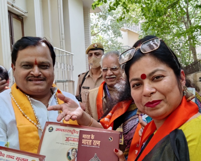 हिंदी भवन, नई दिल्ली में 15 मई को हुए एक भव्य कार्यक्रम में सहारनपुर, उत्तर प्रदेश की स्मृति चौधरी को काव्य रत्न से सम्मानित किया गया। यह सम्मान उन्हें भारत के भारत रत्न पुस्तक में अपनी अविस्मरणीय रचना के लिए आकाशवाणी के पूर्व निदेशक वर्तमान में संस्कृति मंत्रालय भारत सरकार के हिंदी सलाहकार डॉ हरिसिंह पाल जी के कर कमलों से प्राप्त हुआ। कार्यक्रम में मुख्य अतिथि के रूप में सुदर्शन न्यूज़ चैनल के फाउंडर, डायरेक्टर एवं सीईओ श्री सुरेश चैव्हान जी की गरिमामय उपस्थिति के साथ साथ हिंदी और अंग्रेजी भाषा साहित्य में पद्मश्री से सम्मानित डॉ श्याम सिंह शशि जी, हिंदी और संस्कृत भाषा के विद्वान हिंदी अकादमी, नई दिल्ली के सचिव डॉ जीतराम भट्ट जी, हिंदी भवन नई दिल्ली की फाउंडर मेंबर एवं अध्यक्षा, हिंदी साहित्य सम्मेलन की अध्यक्षा, मशहूर कवयित्री डॉ इंदिरा मोहन जी के साथ-साथ देश विदेश के लगभग 140 साहित्यकार उपस्थित थे। पिछले कुछ वर्षों में साहित्य सृजन के क्षेत्र में अग्रसारित स्मृति चौधरी की रचनाएं देश विदेश की राष्ट्रीय एवं अंतर्राष्ट्रीय किताबों, पत्र-पत्रिकाओं में छपती रहती हैं। अपने लेखों और कविताओं के लिए राष्ट्रीय अंतरराष्ट्रीय मंचों से बहुत बार सम्मानित की जाती रहती हैं। यह पुस्तक भारत के भारत रत्न भी गोल्डन बुक ऑफ रिकॉर्ड्स में शामिल की जा चुकी है। स्मृति चौधरी भारत के सरकारी शिक्षकों के सबसे बड़े स्वैच्छिक समूह शैक्षिक आगाज़ की फाउंडर मेंबर और लिटिल हेल्प ट्रस्ट एवं रेडियो मेरी आवाज़ की संरक्षिका है। साहित्य कार्यों के अतिरिक्त अपने सामाजिक कार्यों के लिए भी स्मृति चौधरी पूर्व में इंडोनेशिया के एंबेसडर डीसीएम श्री बशीर अहमद जी एवं पद्मश्री डॉ विजय कुमार शाह जी के द्वारा सम्मानित की जा चुकी हैं। हिंदी अकादमी, नई दिल्ली के साथ मिलकर रेडियो मेरी आवाज़ के द्वारा अंतरराष्ट्रीय जगत में हिंदी की पहचान को सुदृढ़ करने के लिए भी यह जानी जाती हैं। इनकी सभी संस्थाएं युवाओं में देशप्रेम, संस्कार और प्राणियों एवं पर्यावरण के प्रति संवेदनशीलता जागृत करने के लिए, हिंदी साहित्य के प्रचार प्रसार के लिए पिछले 4 सालों से अभूतपूर्व कार्य करते हुए भारत और भारत के बाहर लगभग 35 देशों में अपनी अलग पहचान बना चुकी है। लिटिल हेल्प ट्रस्ट एवं रेडियो मेरी आवाज की फाउंडर सुश्री समृद्धि चौधरी एवं राष्ट्रीय संयोजक एवं क्रिएटिव डायरेक्टर सुश्री सृष्टि चौधरी भी कार्यक्रम में उपस्थित थी। सम्मानीय श्री सुरेश चैव्हान जी के द्वारा दोनों बेटियों को अपनी संस्था एवं कार्यों के बारे में विस्तार से बताने के लिए सुदर्शन न्यूज़ चैनल पर एवं टैन न्यूज़ के फाउंडर श्री जी.माली द्वारा भी स्मृति चौधरी और उन