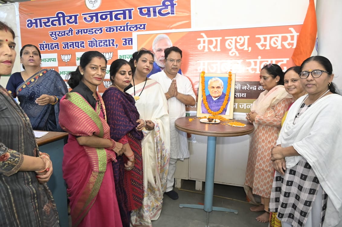 विधानसभा अध्यक्ष ऋतु खण्डूडी भूषण ने पुर्व प्रधानमंत्री भारतरत्न स्व अटल बिहारी वाजपेई के चित्र पर पुष्प अर्पित कर उन्हें श्रद्धांजलि अर्पित की।अपने विधानसभा कोटद्वार के पदमपुर सुखरो मंडल द्वारा आयोजित कार्यक्रम में पहुँचकर विधानसभा अध्यक्ष ने पूर्व प्रधानमंत्री को नमन किया,इस दौरान उन्होंने कहा कि अटल बिहारी वाजपेयी का एक सहज तथा मृदु स्वभाव एवं बेदाग छवि वाला व्यक्तित्व हम सभी को सदैव प्रेरित करता रहेगा। उनका स्मरण करते हुए उन्होंने उनकी पंक्तियों को दोहराते हुए कहा कि सरकारें आएंगी जाएंगी, पार्टियां बनेगी बिगड़ेंगी, मगर यह देश रहना चाहिए। इसका लोकतंत्र अमर रहना चाहिए। इससे सभी को प्रेरणा लेते हुए देश प्रथम के भाव के साथ कार्य करना चाहिए।उन्होंने कहा की भारत रत्न श्रद्धेय वाजपेयी देशभक्ति एवं भारतीय संस्कृति की प्रखर आवाज़ थे। उनके नेतृत्व में पोखरण परीक्षण और कारगिल विजय से विश्व पटल पर एक मजबूत भारत की नींव रखी।इस दौरान मंडल अध्यक्ष हरी सिंह पुंडीर, पार्षद नीरू बाला खंतवाल,पिंकी खंतवाल, मनमोहन द्विवेदी, रेखा सुंद्रियाल, उमेद सिंह बिष्ट,सुरमान सिंह ,संजू द्विवेदी आदि मौजूद रहे।